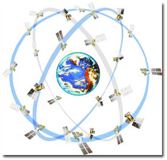określonych orbitach. Nadają one sygnał odbierany przez urządzenia na Ziemi.